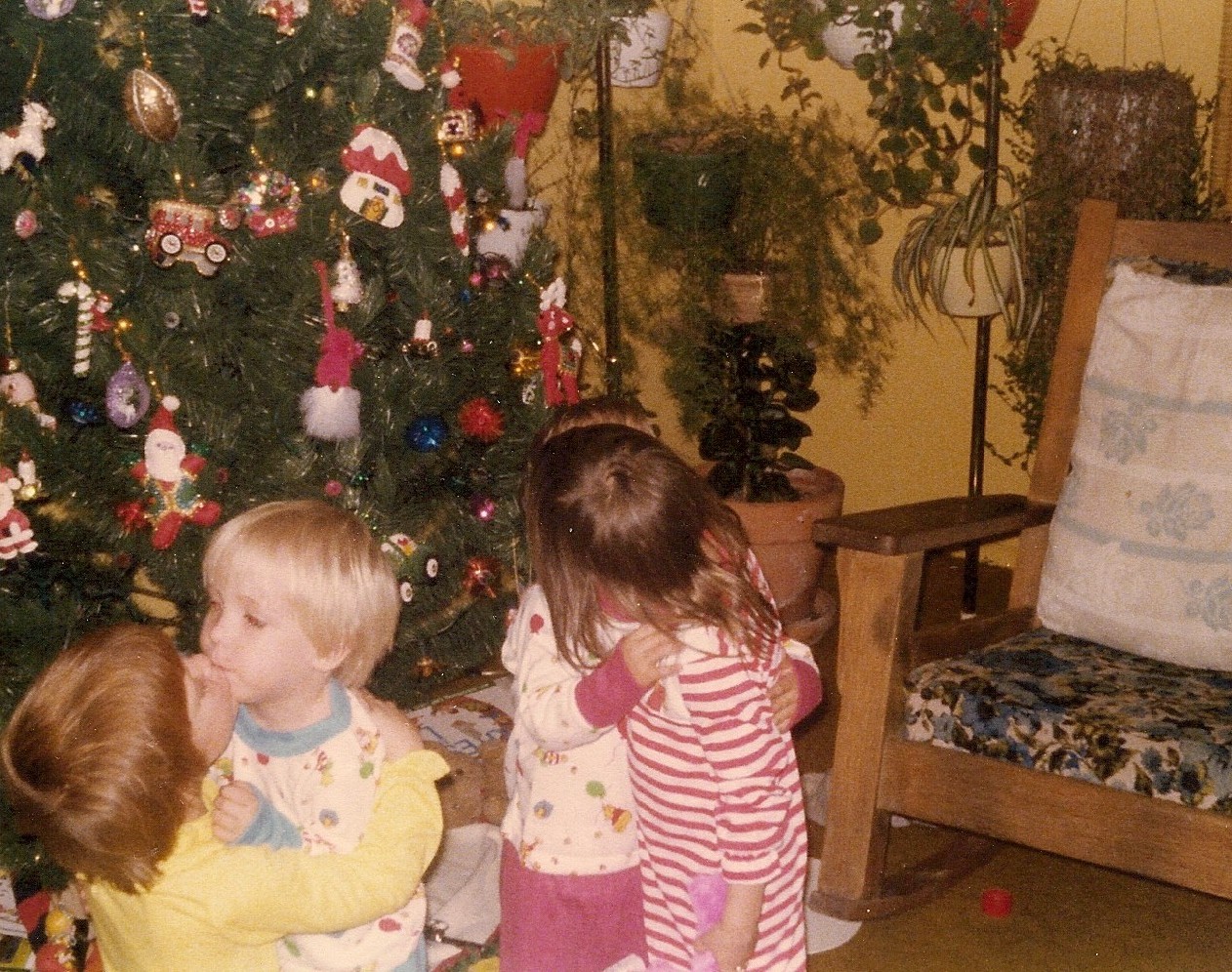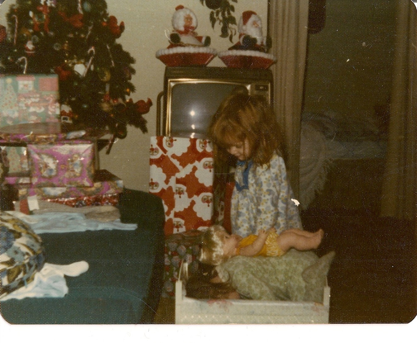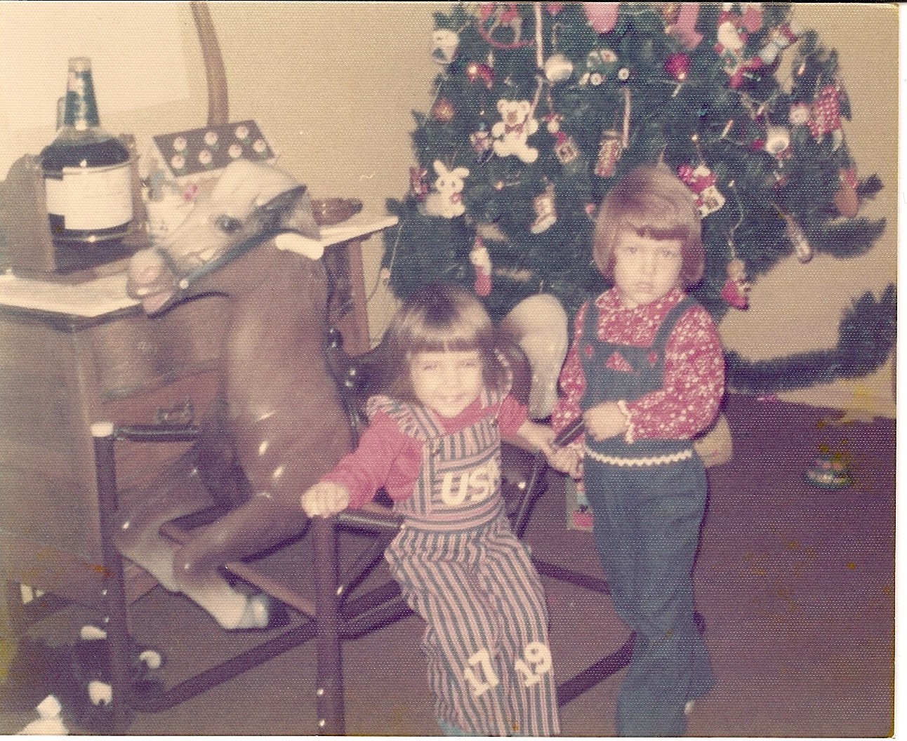 5. We have lots of Christmas morning photos! Some of my favorites show our stockings that my Grandma made, our stuffed animals and blankets, and how we were getting along (at least for that day). You can also see the hobby horse that Aaron cut his eye on!