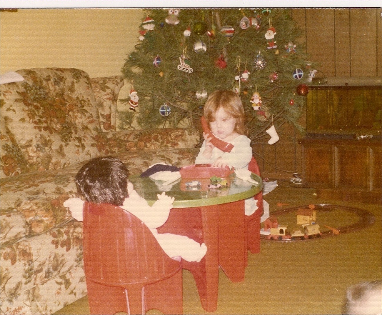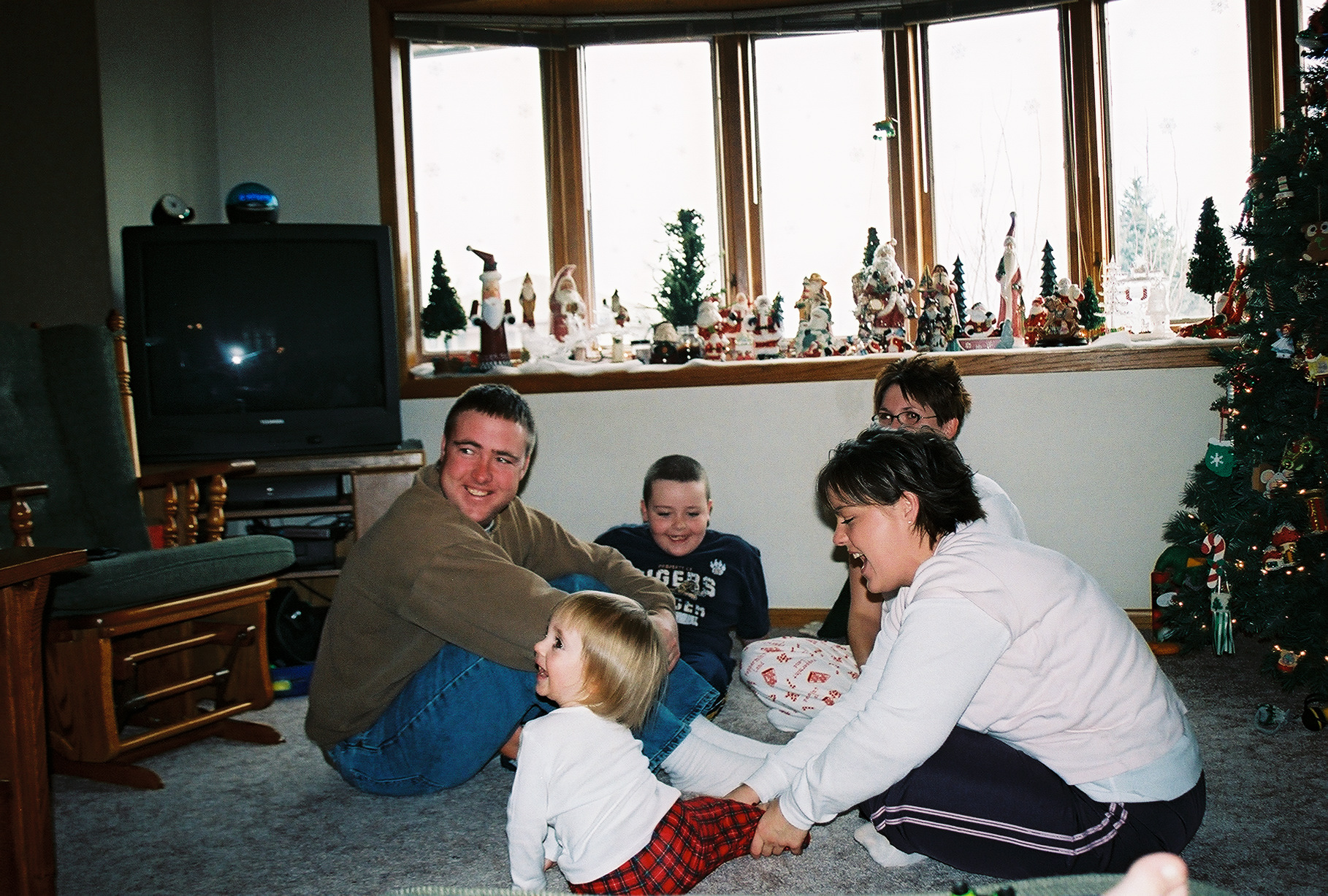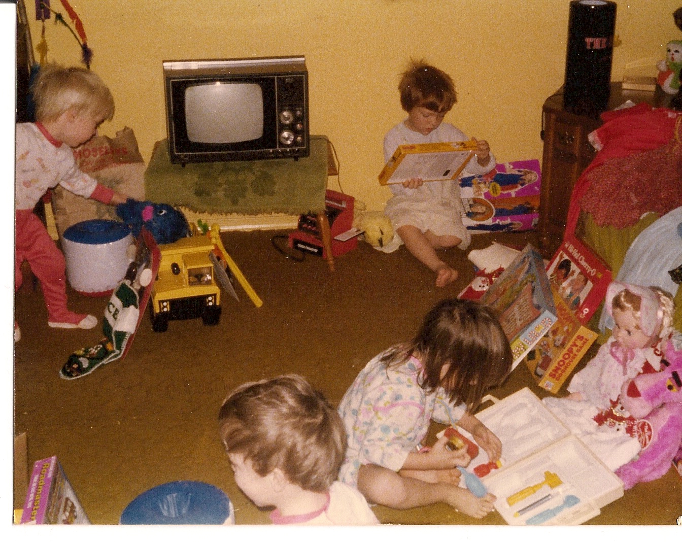 5. We have lots of Christmas morning photos! Some of my favorites show our stockings that my Grandma made, our stuffed animals and blankets, and how we were getting along (at least for that day). You can also see the hobby horse that Aaron cut his eye on!
