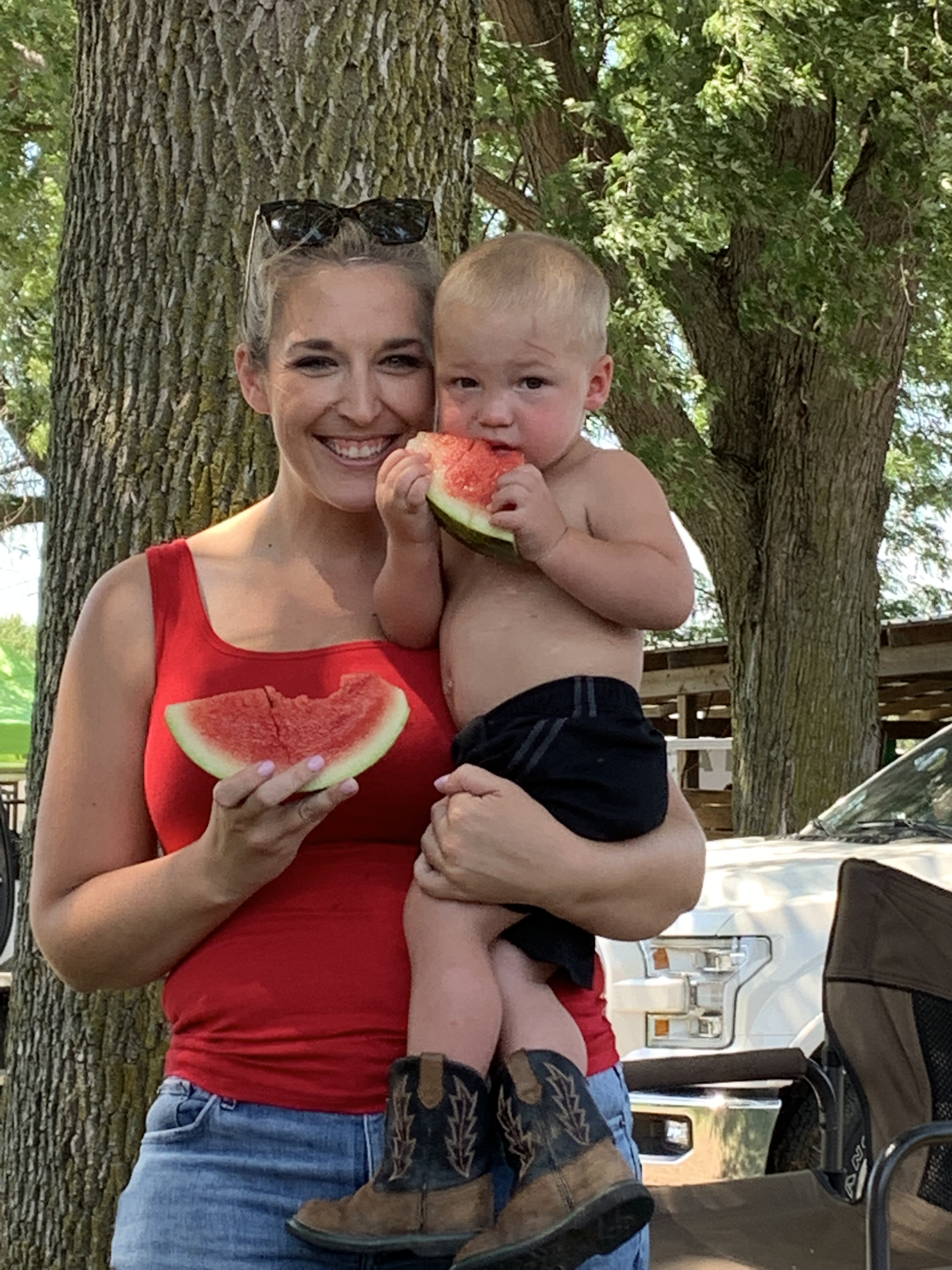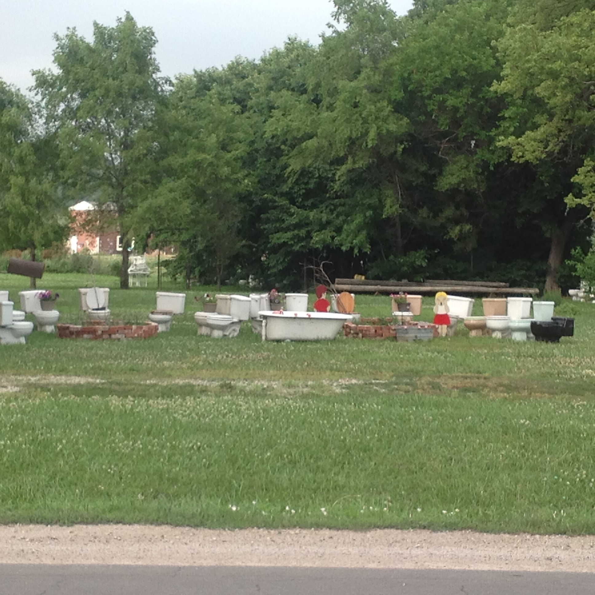 Like most Poland family trips, that one was filled with adventures. While at the lake with Dad, we checked on our Treasures at the Lake geocache hidden at the BLIA building, listened to Matt Snook sing, and played with Tate. We went to Big Jim’s birthday and saw many family members which is always fun. And then we saw some unique Missouri sites including the morel mushroom along the interstate and this Craig, Missouri bathtub and toilet display.
