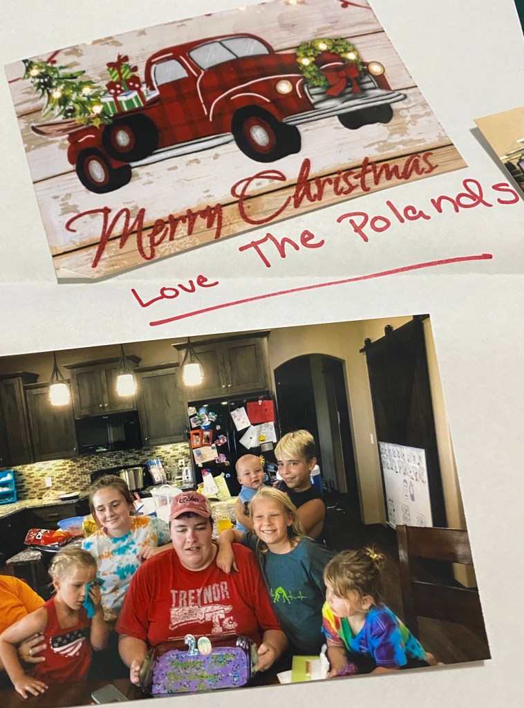 Today’s picture was from Macli. She definitely loves her cats and her cousin Brock. I’ve been writing about memories I have with all of the kids and tonight I’m switching to a new memory. This year, for Christmas, I put together a ‘punch box’ full of all things slime related (and all Mom-approved) for my youngest nieces and nephew. Each night they have been ‘punching’ one of the holes and playing with slime with the add-ins or colors, etc. The slime adventure will continue on Christmas Day. I have enjoyed watching them open one of the spaces each night and playing together. I’m loving the new memories we have made this year even when we can’t be together.