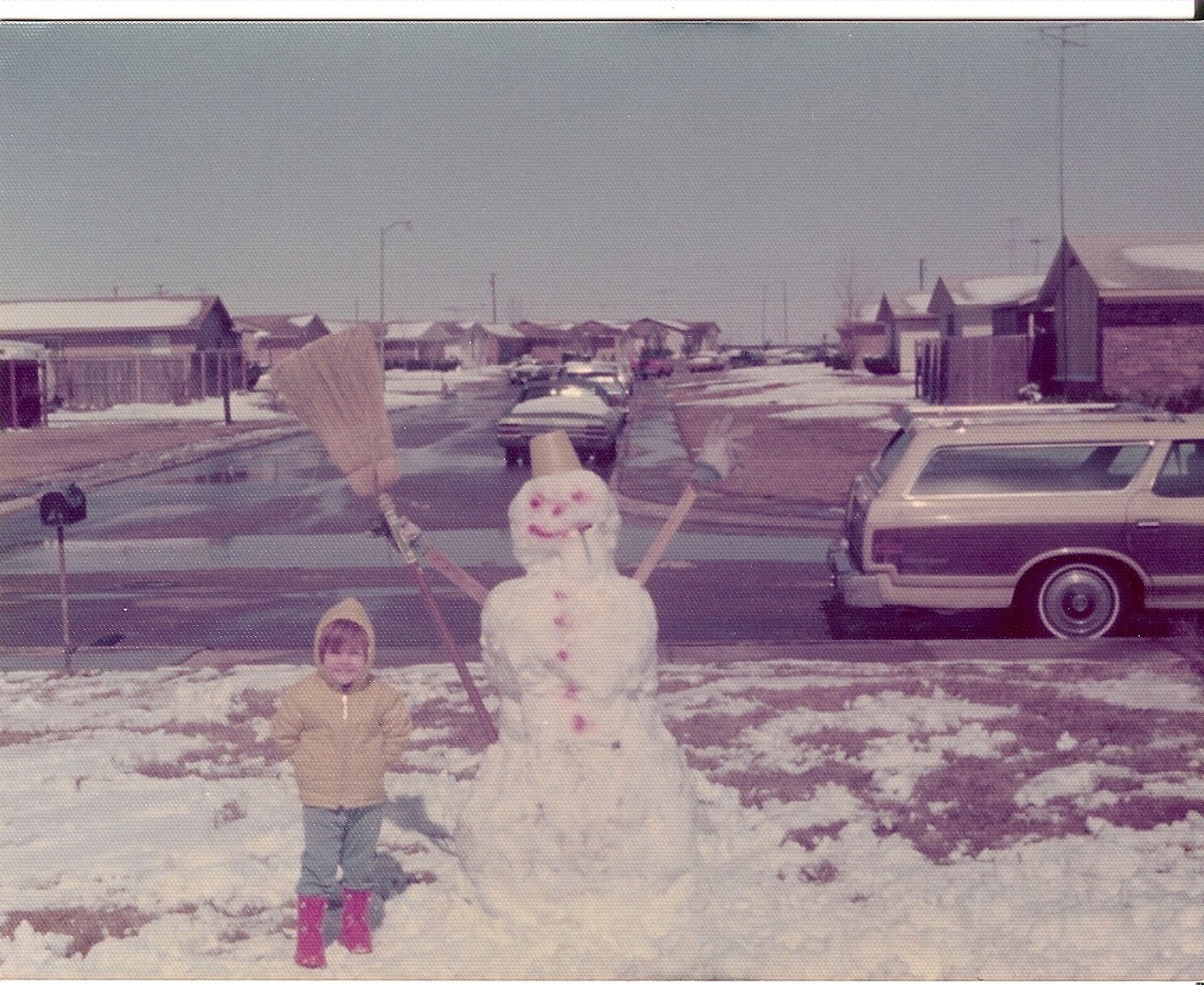 4. Building snowmen was a rare occurrence in Texas so I treasure that photo. When we were a bit older, it iced in Texas and Dad wanted to show us how to slide on the ice. So he sat in a lawn chair planning to slide down the front sidewalk. Instead, the legs of the chair slid out from under him and he went straight down.