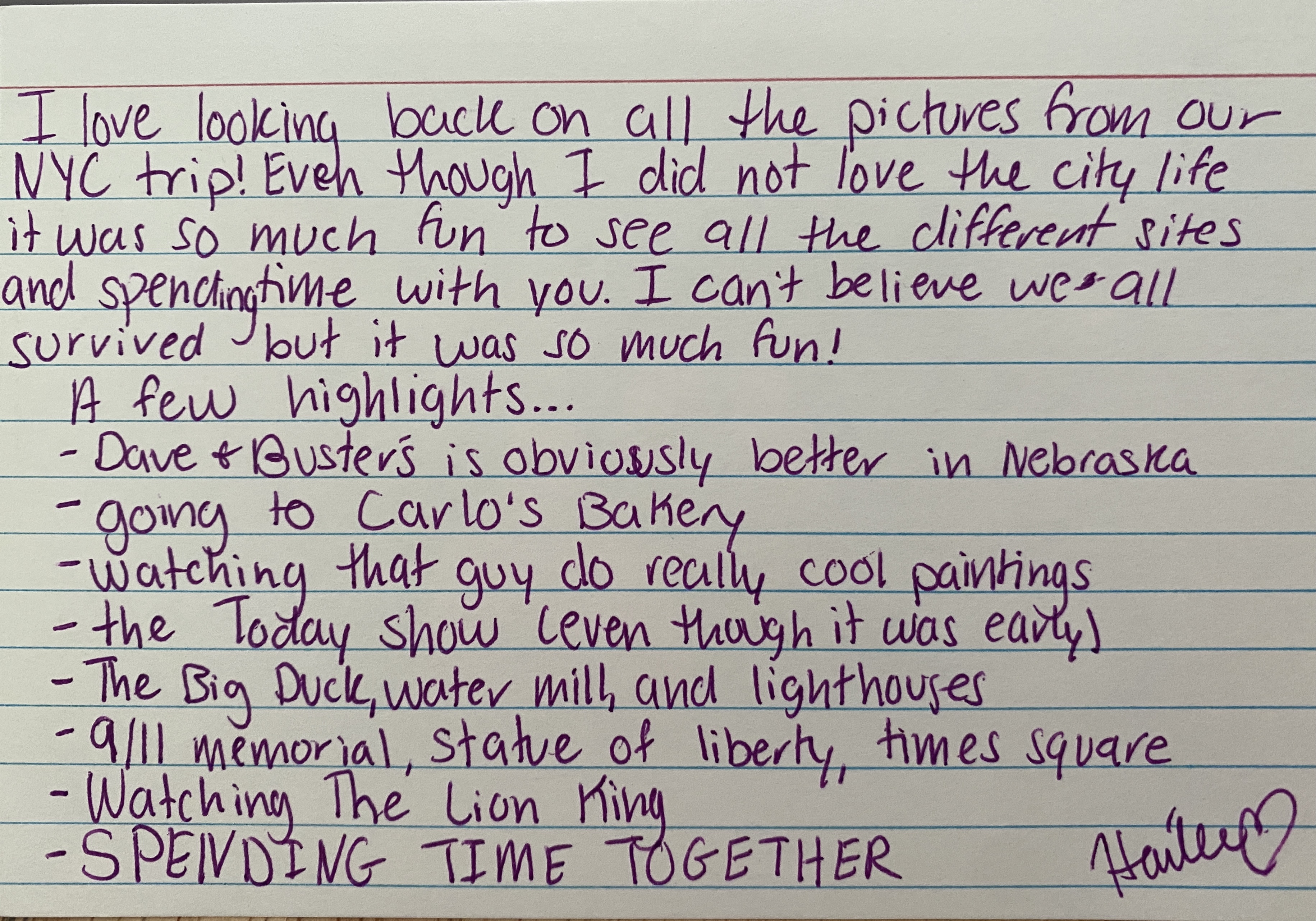 Hailee hit on all of the highlights in her memory so I will share photos of many of them. There was also a lot of NY pizza eating involved. I agree with Hailee-the best part of all of these memories is spending time together. I love that even though we can’t be in the same place these days, we still take time for each other and connect.