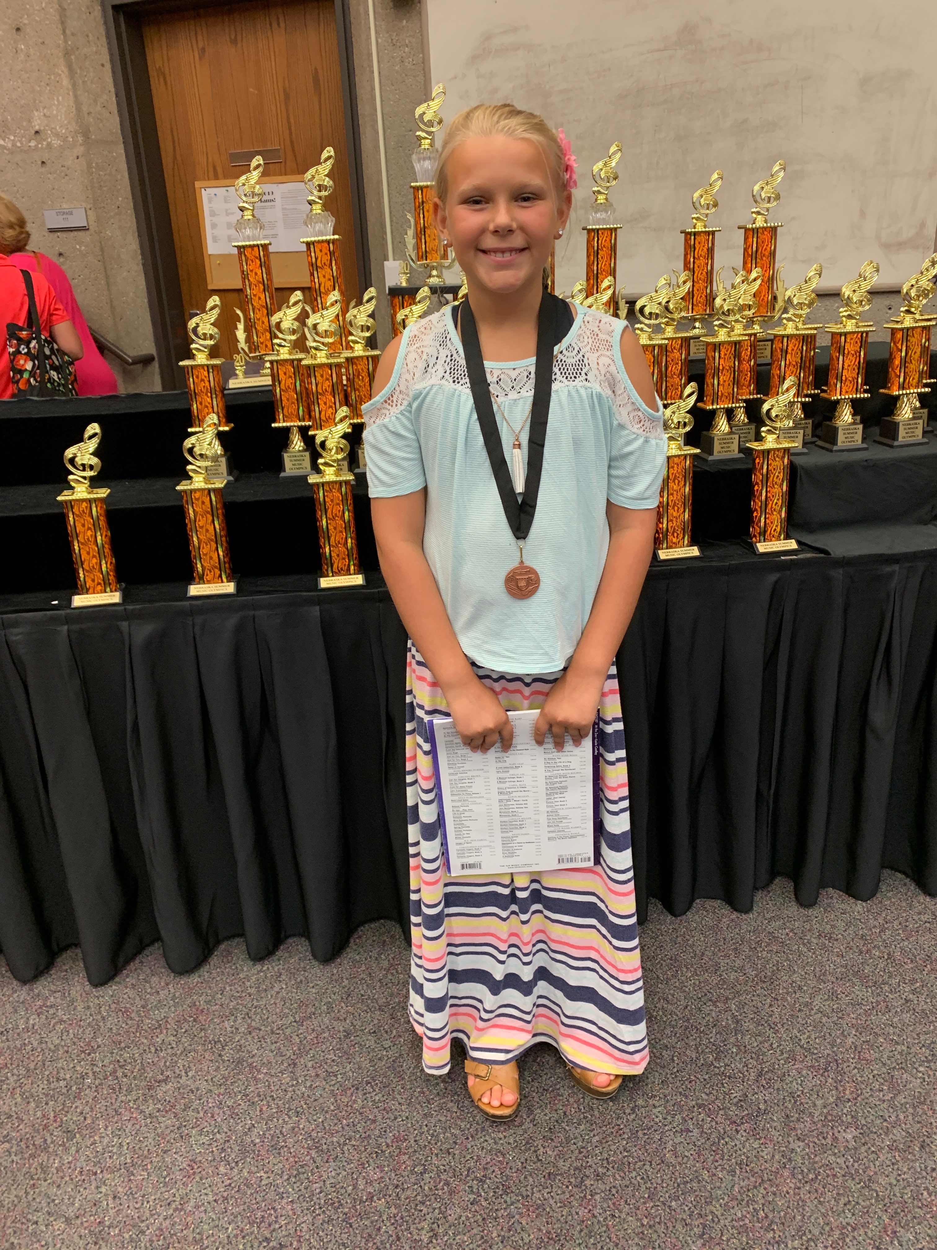 Berkli competed in the Summer Music Olympics at University of Nebraska at Omaha two years ago and her mom asked if I would like to take her to the competition. I was excited to be able to take her for a couple of reasons. First, I was going to enjoy being able to hear her play. I had to stand in the hallway and listen while she was judged but it was still fun to be able to hear her play. I had taken piano lessons when I was young and knew it was hard work to learn and memorize a piece for a performance. Second, the competition was at UNO where I had gone to school so I could show Berkli around my old school. Third, it was close to Jones Brothers Cupcakes which we could get on the way home to celebrate! While there was a lot of waiting to play and then to get her award, it was a fun day out with her. And as always, I am thankful for the memory and to be able to call her my niece.