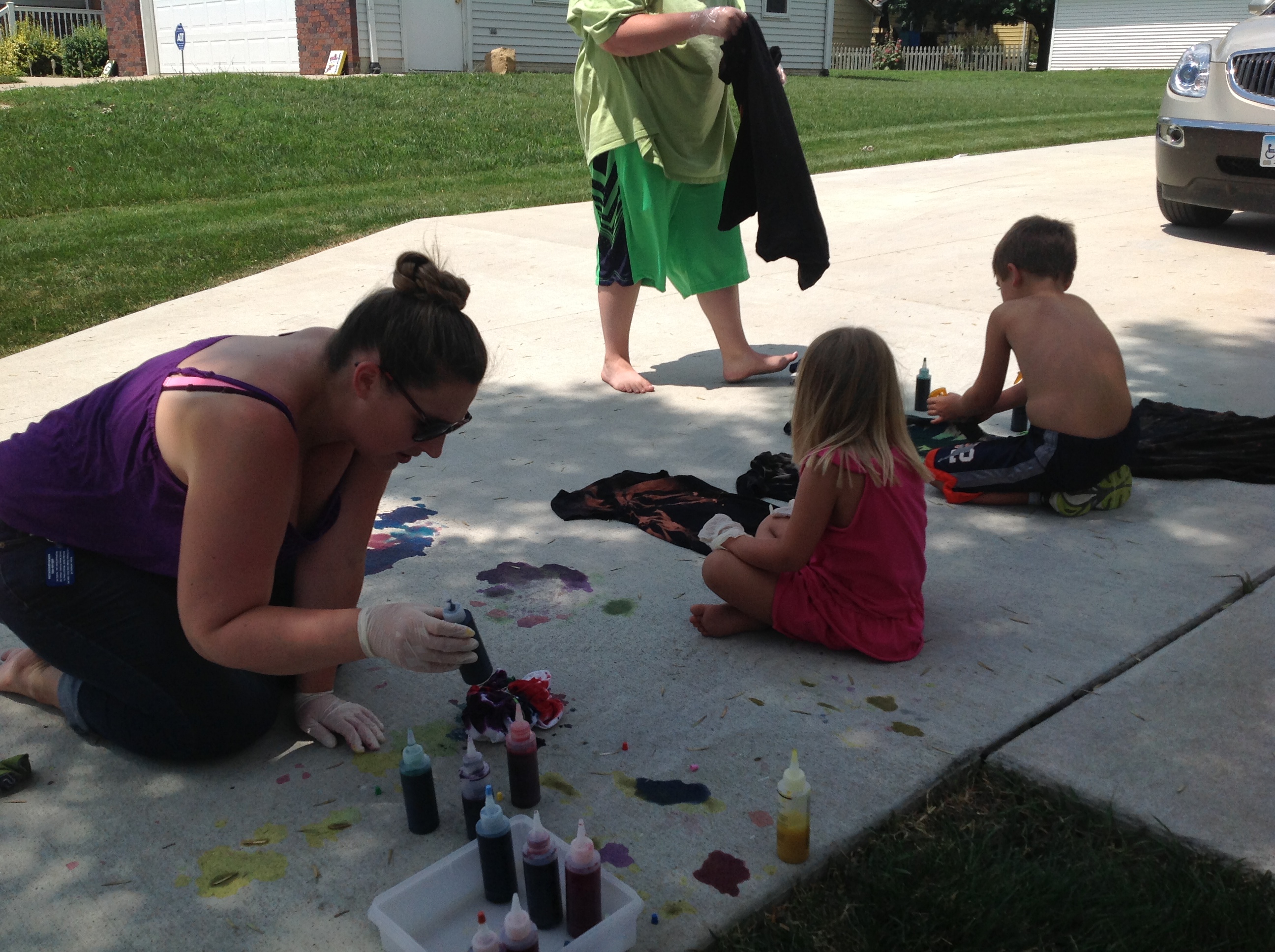 Today I had a package to open rather than the memories I have been opening and I was curious. I almost opened it last night but I’m glad I waited. I should have known what it was given that it was from Kristin but honestly didn’t have a clue. I’m not sure when Kristin and I first started doing tie-dye with the kids but it eventually ended up on the list of ‘annual Poland activities’ that must be done every year but only at a time when both Kristin and I were back. It’s also one of the few activities where I don’t have many photos of us doing tie-dye over the years because 1) it’s over pretty quick and 2) I was usually too involved in dying things to stop for photos. What I do have though, is photos of all of us in our tie-dye over the years so here’s to enjoying those as well as a few of us actually dying shirts, pillow cases, towels and anything else we could find.