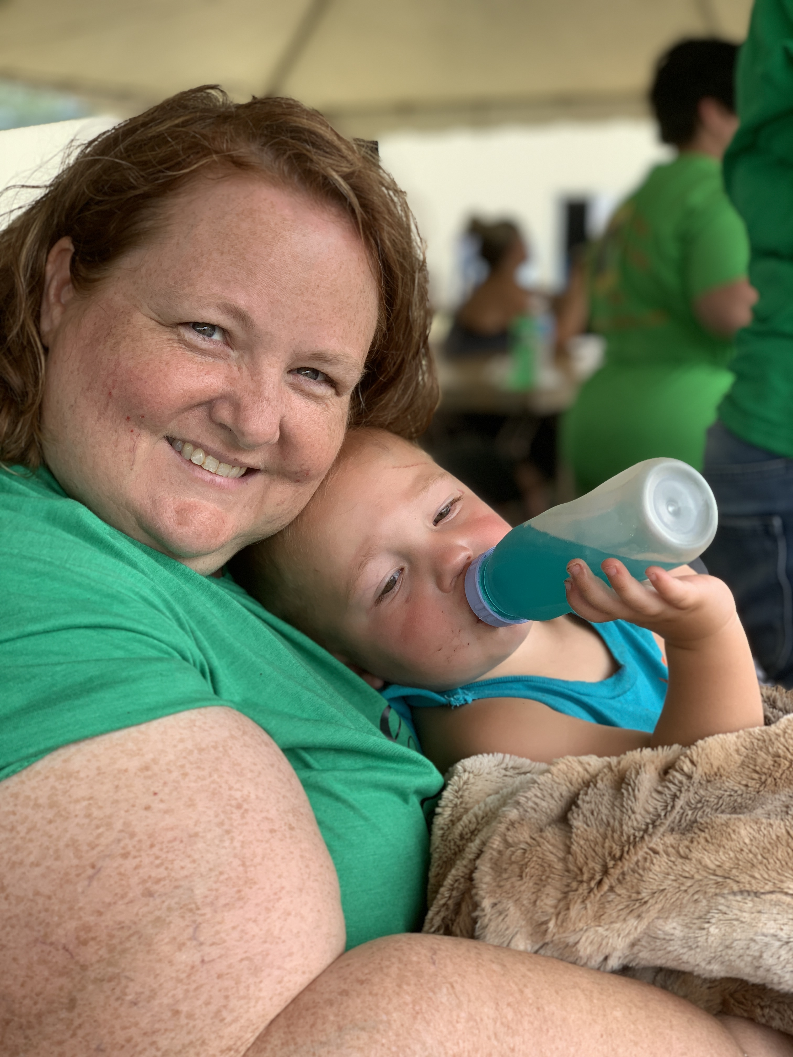 Today’s picture is from Huck and is a copy of a photo I have in my office at work. It’s from Westfair 2 years ago. We were all hanging out in the tent on the lawn and I had fed him and he fell asleep in my arms. I have always enjoyed snuggling with my nieces and nephews and he is no exception. I don’t get the chance very often so I am always willing to hold them even for just a little while when they are sleeping and cuddly. Huck likes his blankets as much as any of the kids.