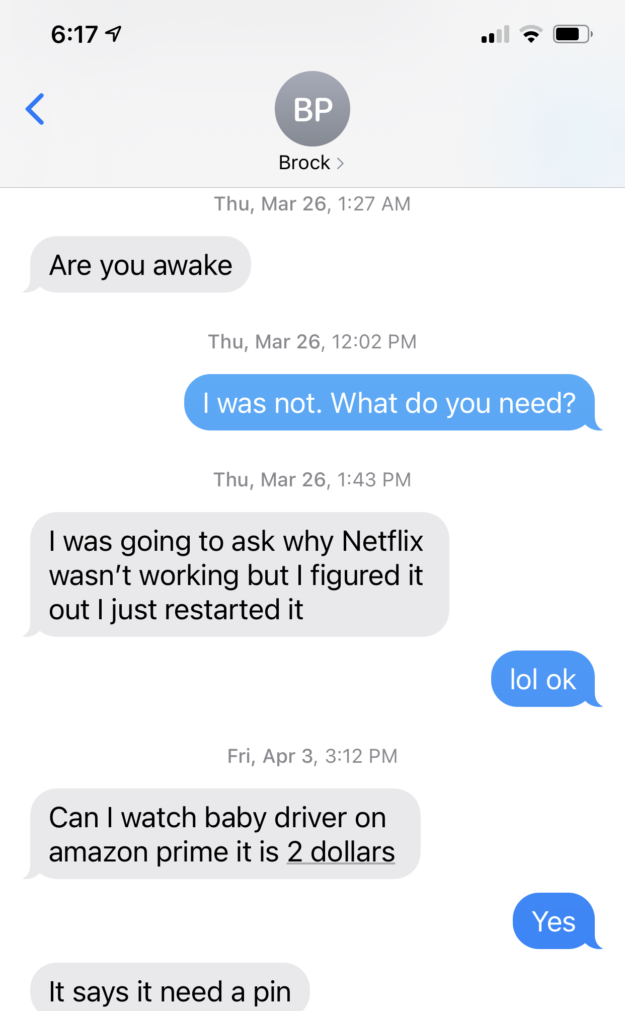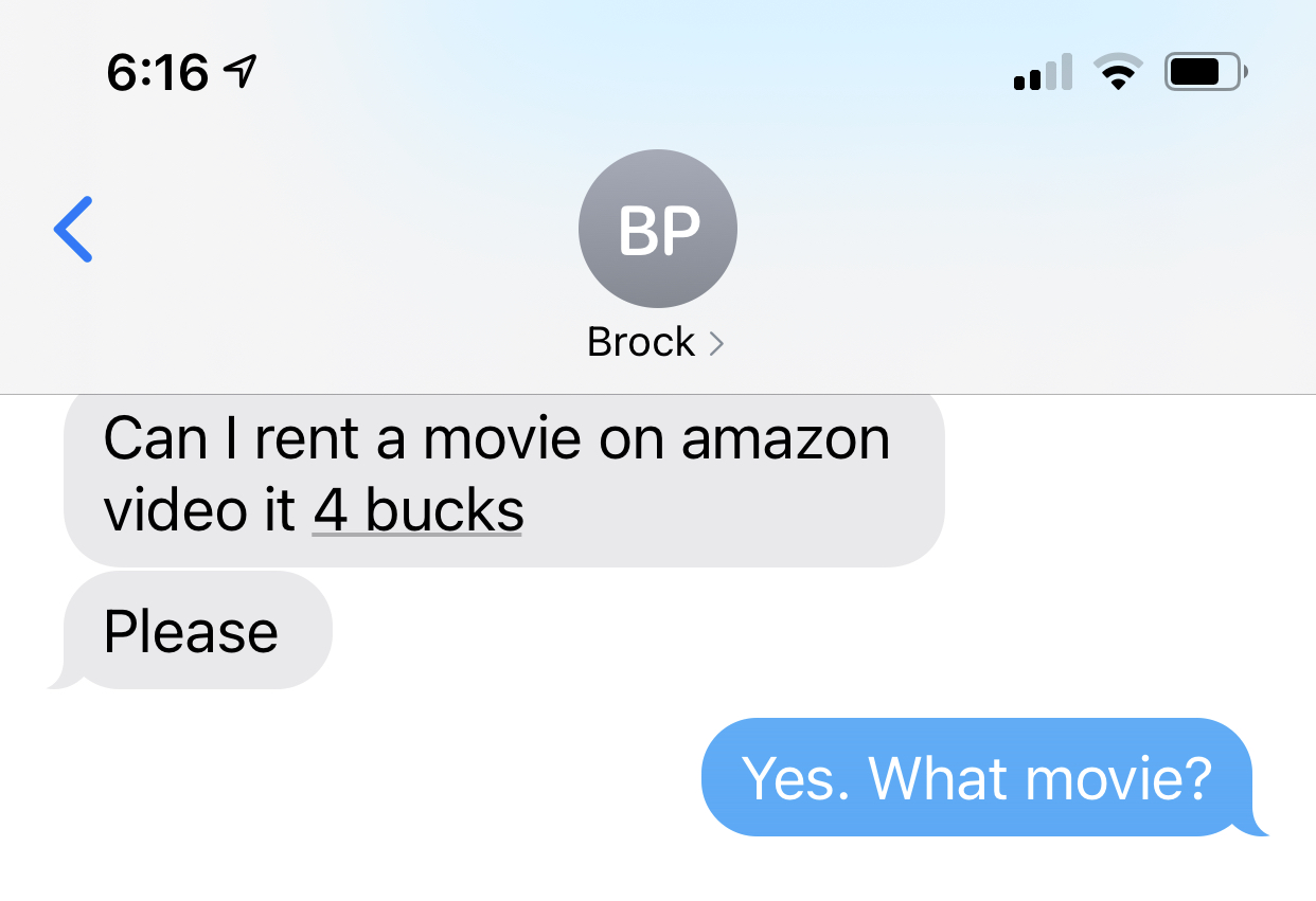 The running joke is that the only reason Brock contacts me is to rent a movie or if there is a problem with Netflix. And there is good reason for the joke. When others would worry if they saw a missed call after they went to bed from a family member, when I see it’s Brock, I assume he wanted to watch something and wasn’t able to do so. While we certainly have both phone and text conversations about other things, we do have plenty that relate to renting movies or the password for various accounts so he can watch movies. I can’t blame Brock for this-I have been allowing him (and everyone else) to rent movies and/or use my accounts to watch movies for several years now. In fact, long before Brock understood what it mean to have to ‘pay’ for something online, he asked me if he could watch a movie on my Amazon account. I asked if it was free-meaning included with my prime account and Brock responded back that yes, he wouldn’t have to pay for it (a true statement). So I agreed and five minutes later, I became the proud owner of a newly released……
