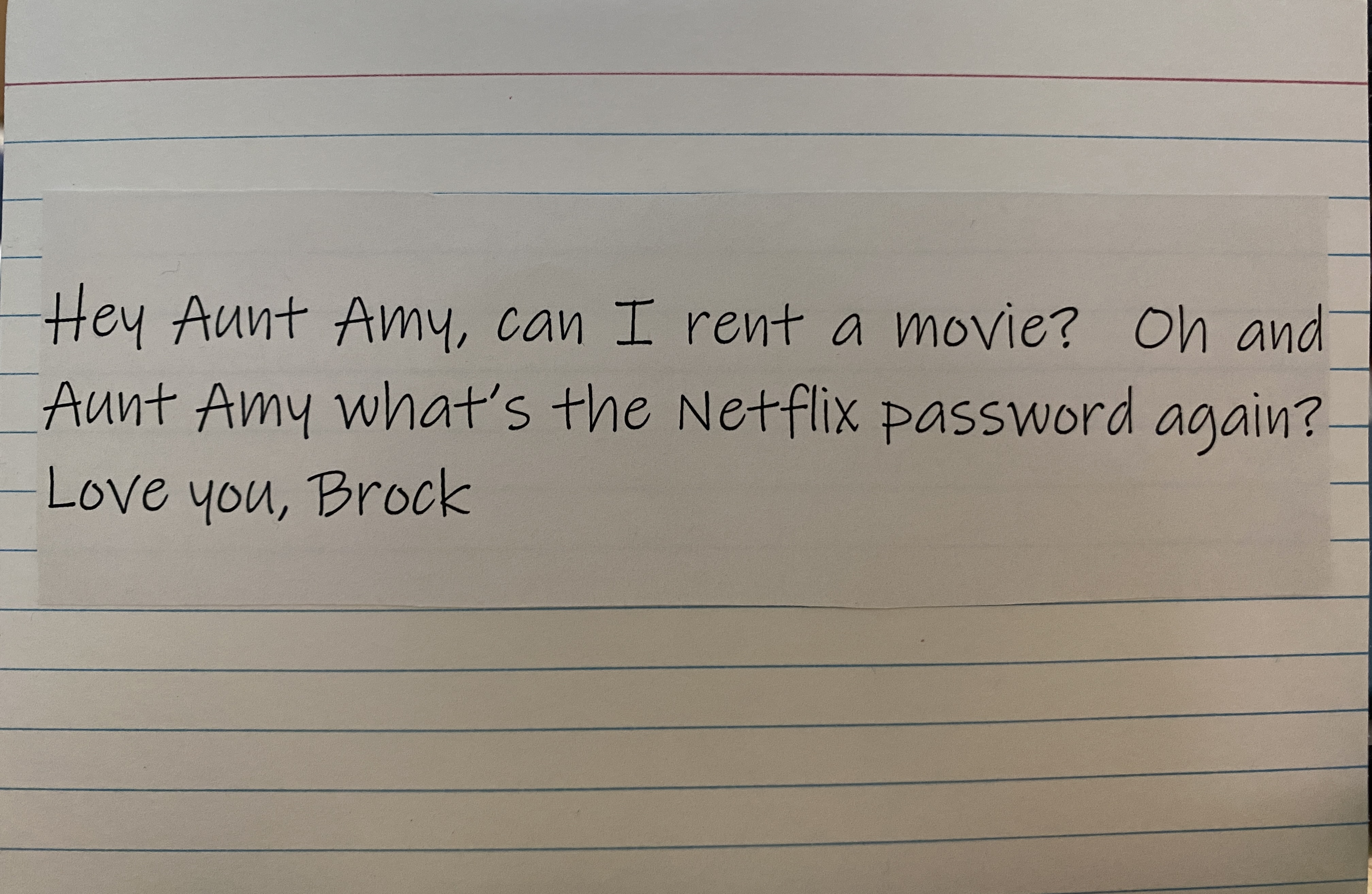 Back to Brock’s memory and our conversations-let me leave you with some of our many conversations over the years about renting and watching movies. I did get smart and started making my birthday part of the password they have to type in each time-maybe they will remember it better!