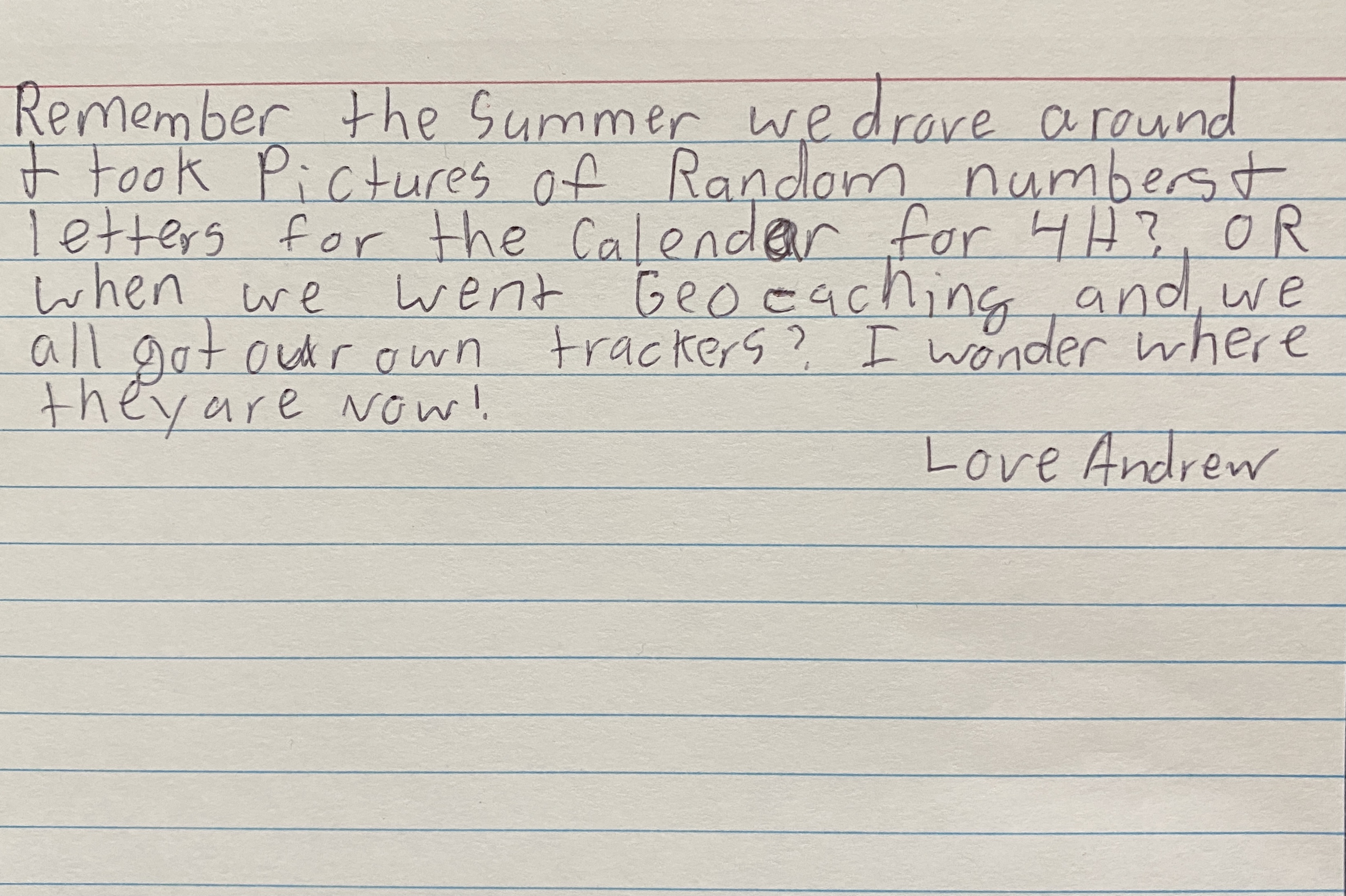 Today my card is a drawing from Berkli, the oldest of the youngest Polands. I don’t have as many memories with them as I do the older ones because I stopped having the entire summer off and in Iowa before we had the chance. And I no longer live just 2 hours away so I can’t go down for a long weekend anymore. In many ways, that makes me cherish every moment and opportunity I do get to spend with them a little more. I was going to start with an earlier memory for Berkli and I will share it before the end of the month. But today, I want to share one of my favorite memories with Berkli.