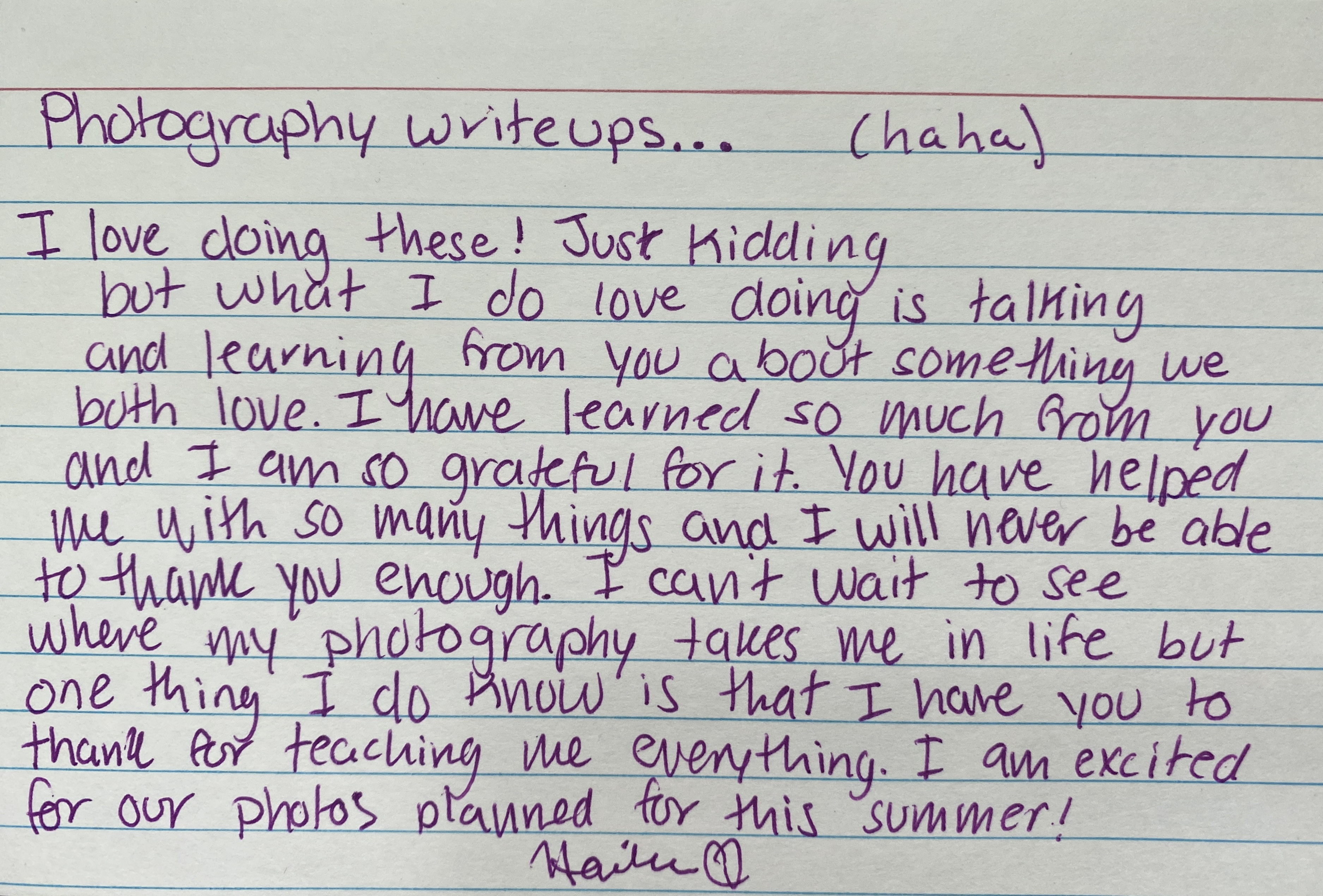 I can’t tell you how many photos exist of her shoes and feet from when she was young. She was especially fond of taking photos of her feet up in the air while she was laying down. I tried many times to get her to set up photographs but it would be many years before that would happen. One of the ways I have witnessed her photography skills grow is at our family reunions. For the first several years, I took most of the photos at the reunions and was in charge of taking all of the group photos on Sunday morning-ish. Over the years, Hailee started taking more and more of the photos over the weekend, first with my camera and then with her own. She started helping me get the group photos set up a few years ago but last year, she took the photos and I assisted her. It’s not easy coordinating more than 20 different photographs between the different families and getting more than 40 people and an assortment of dogs posed and ready for the full family photo. She did it all with a smile on her face.