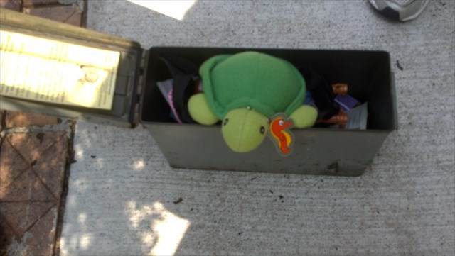Sarah the inch worm belongs to the youngest member of our family, Maci. She was activated on the day she was born and has been hidden by Maci’s cousins. Maci, her sister, and her cousins would love to see photos of Sarah as she travels from cache to cache. Sarah has travelled 13789 miles all over the US including Hawaii.